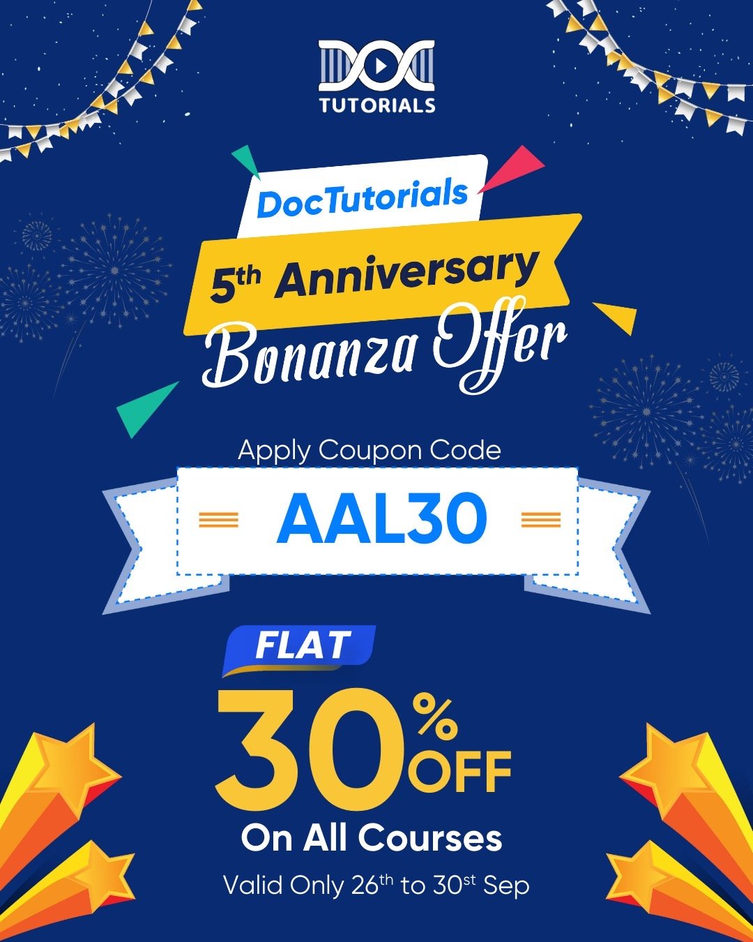 DocTutorials is celebrating its 5th anniversary with a straightforward, site-wide deal. Use the promo code AAL30 between 26–30 September to grab a flat 30% OFF on all courses. No complicated rules, no hidden steps—apply the code on the payment page and the price drops instantly.